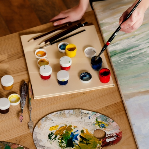 Create a cute ornament using popsicle sticks and paint.